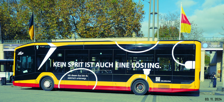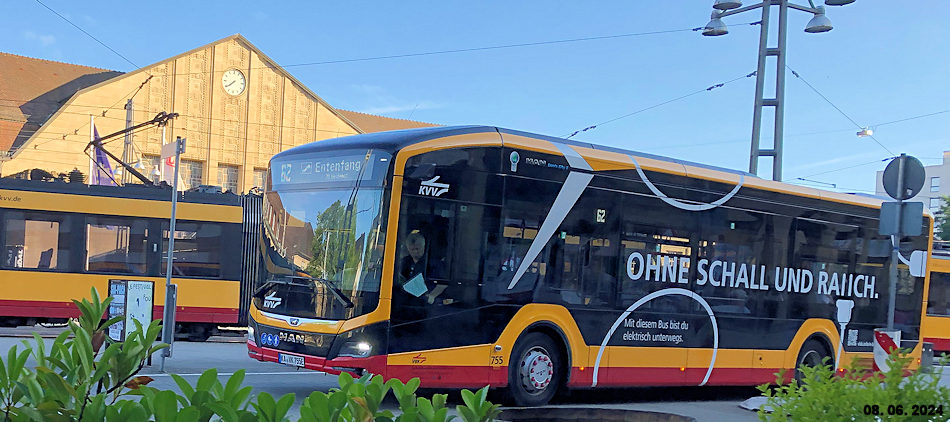 Mittlerweile fahren in Karlsruhe auch Elektrobusse.