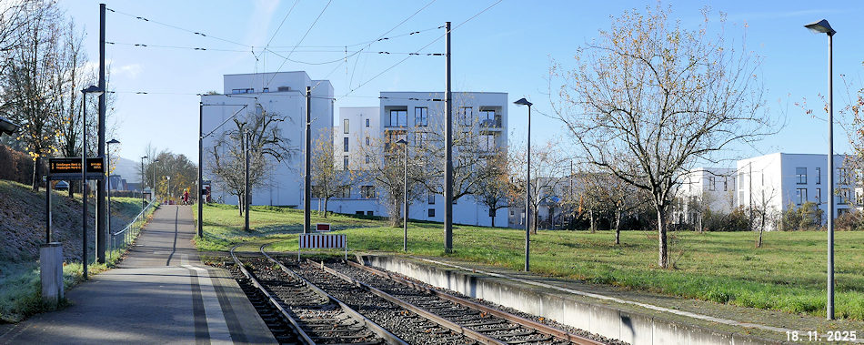 Das - momentan brach liegende - Feld im Vordergrund kann