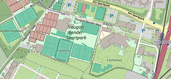 Im Südwesten von Hagsfeld liegt der Traugott-Bender-Sportpark