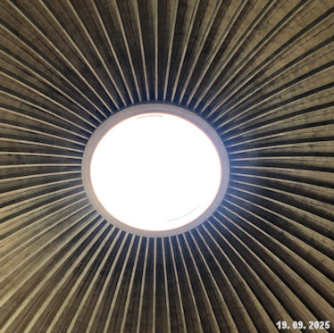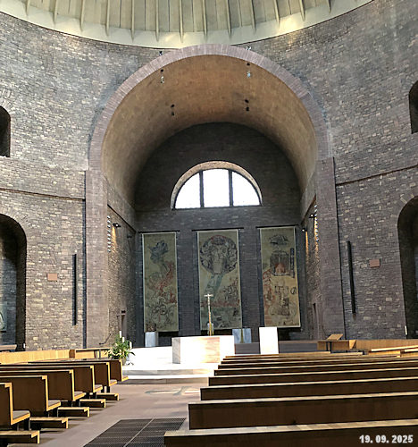 man die Kuppel in Stahlbetonbauweise und ließ die Kirche unverputzt.