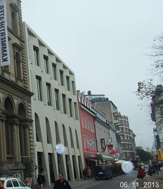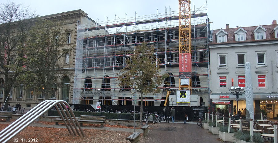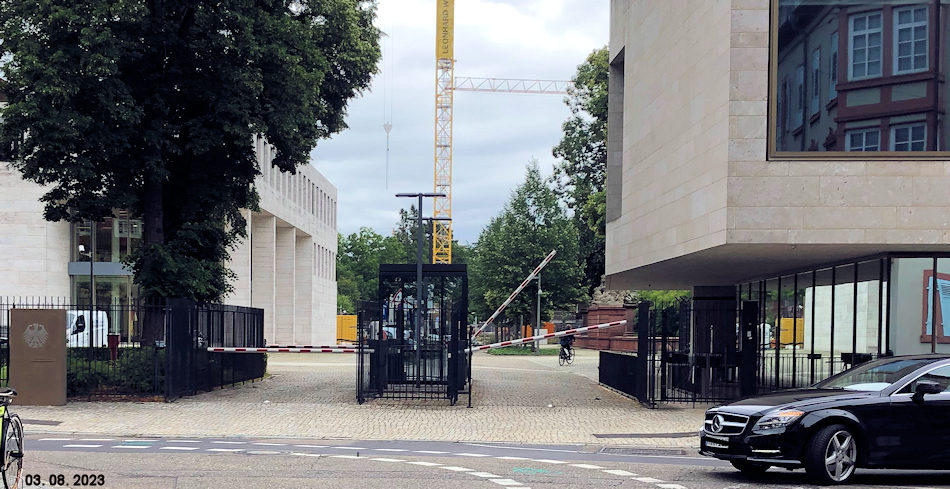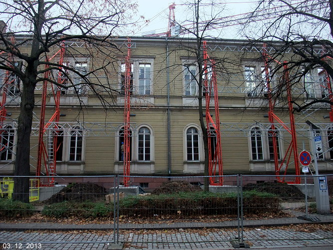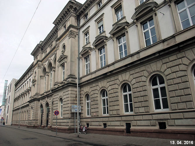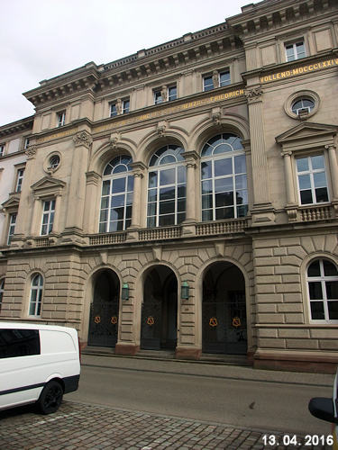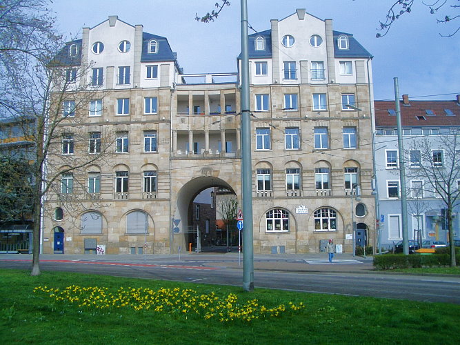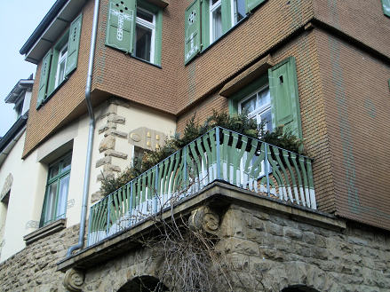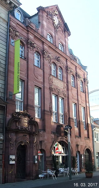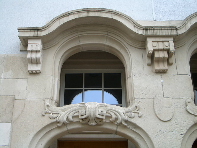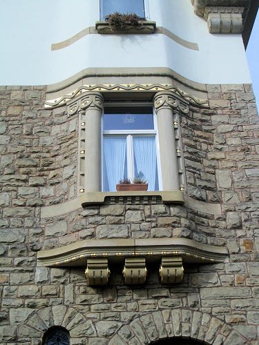 des Bauwerks wird durch Vorsprünge/Vertiefungen gegliedert. Einen besonders herausgehobenen Akzent