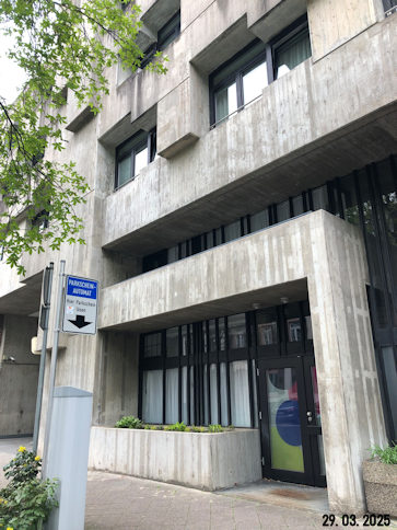 Dieses Bauwerk im Stil des Brutalismus wurde als Altersheim vom Deutschen Roten Kreuz erbaut. Auch
