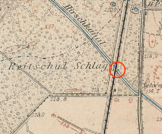 möglicherweise im Bereich einer früheren Reitschule. Eine Bahnlinie