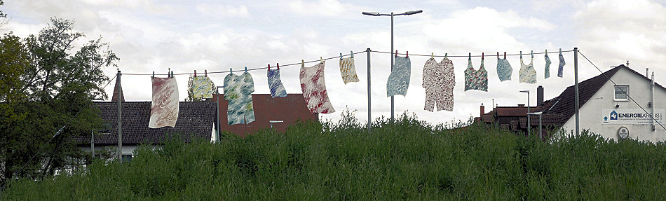 Häuserreihe am Rand der Niederung - der Grünbereich liegt