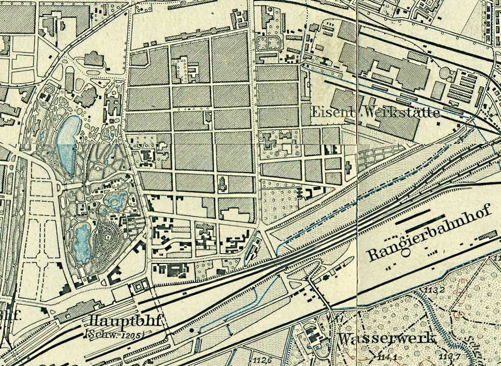 im Norden war der ehemalige Hauptbahnhof, wohin die Bahnen von