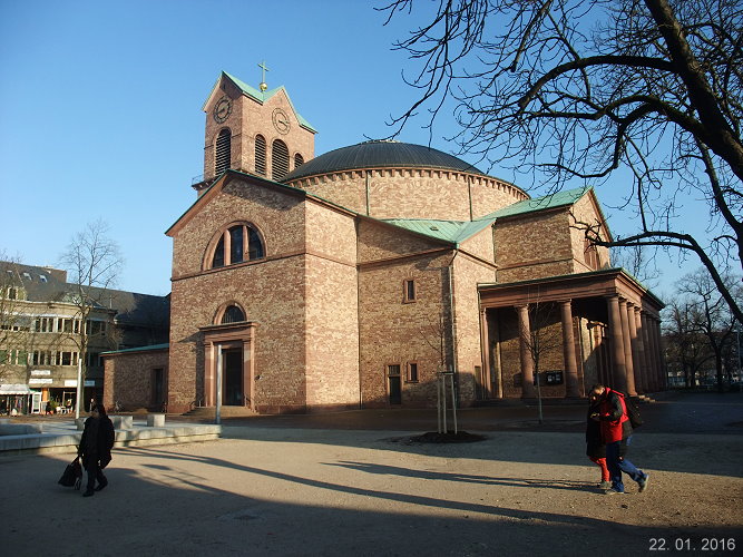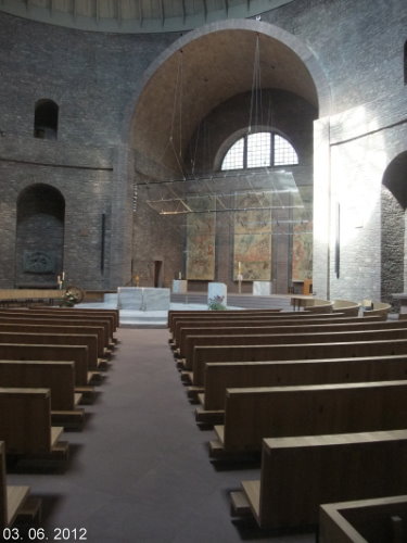 man die Kuppel in Stahlbetonbauweise und ließ die Kirche unverputzt.
