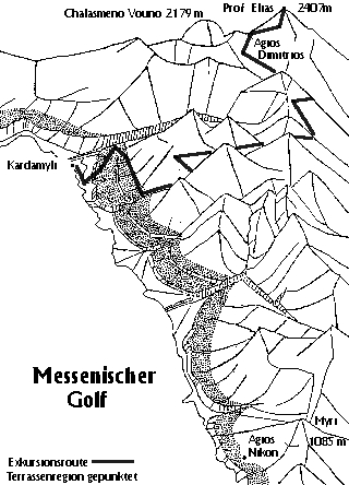höhere Terrassenregion (gepunktet) und dann die
