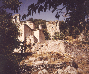 weitgehend verfallenen, Klostergebäuden überragt. Die Mönche