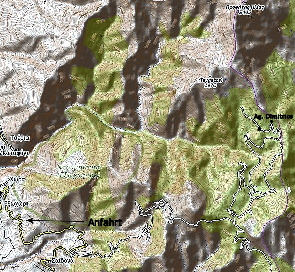 Zisterne, ein Gebäude). Dort parken wir, um den Weg