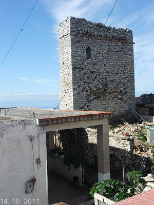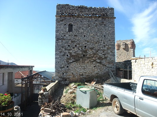 Wohnturm der Oikomeneas ist im Winter 1988/89 halb eingestürzt und seitdem Ruine.