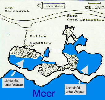 in der ersten Höhle (auf dem Plan die linke Höhle)